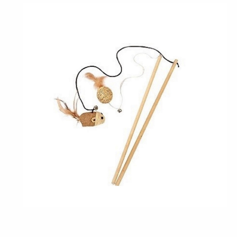 Bone & Bowl | Wood Handle Cat Stick Toy