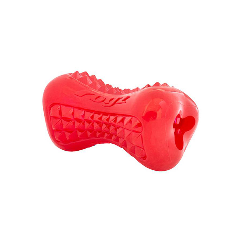 Yumz massages and gives treats! This new treat dispensing chew toy has GMT ‘ Gum Massaging Technology. Made from TPR, the inside treat cavity has 3 fins to hold treats longer. It bounces and fetches as well!