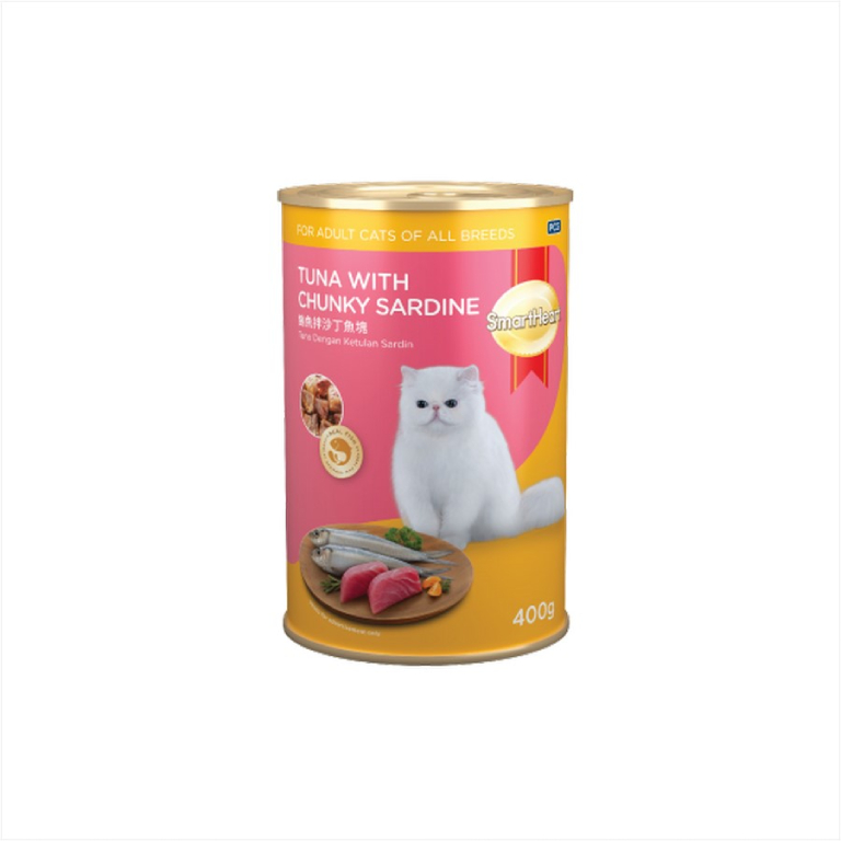Smartheart Cat can Tuna in Jelly 400g Protein ? To maintain good muscle mass Fat ? To maintain healthy skin and shiny coat Minerals ? Strengthen bones and teeth Taurine Plus ? Nourishing eye vision Vitamins ? Enhance body function and immune system